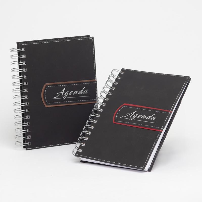 Agenda diária 2025 em couro sintético com wire-o. Possui "bolso" plástico, página para dados pessoais, calendário 2024 á 2026, mapa do Brasil, mapa global, índice telefônico e planejamento. OBS.: PEDIDOS APENAS MÚLTIPLOS DE 10 PEÇAS!