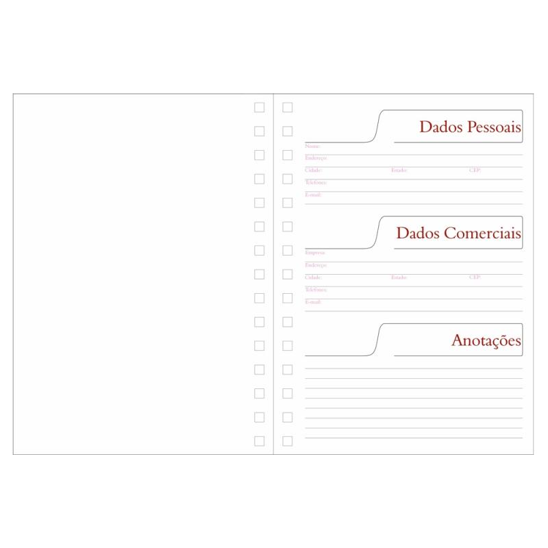 Agenda permanente wire-o com capa MDF ultra brilho sublimática de 3mm. Contém “bolso” plástico atrás da capa, dados pessoais, contatos, mapa do Brasil, mapa mundi e anotações. Sugestão para sublimação do fornecedor: temperatura 200ºC, tempo 30/40 segundos, pressão baixa – é recomendado tirar a umidade do verso do mdf na prensa por 30 segundos antes de realizar a personalização.