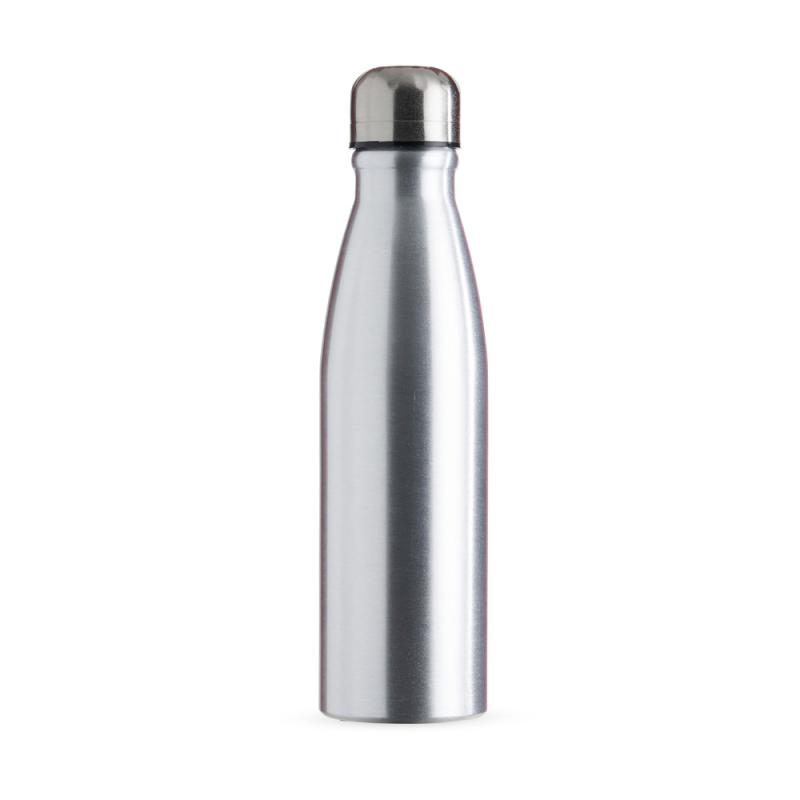 Descrição: Garrafa 630ml de alumínio com tampa rosqueável e pintura metalizada