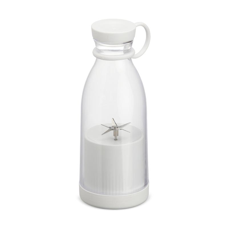 Descrição: Mini liquidificador portátil com capacidade de 380ml. Contém tampa rosqueável plástica com alça emborrachada para transporte, ventoinha inox 6 lâminas e base plástica com borrachas antiderrapantes. Acompanha cabo USB. Obs. (Para o funcionamento do produto a quantidade total de frutas/água adicionadas não deve exceder 300ml).