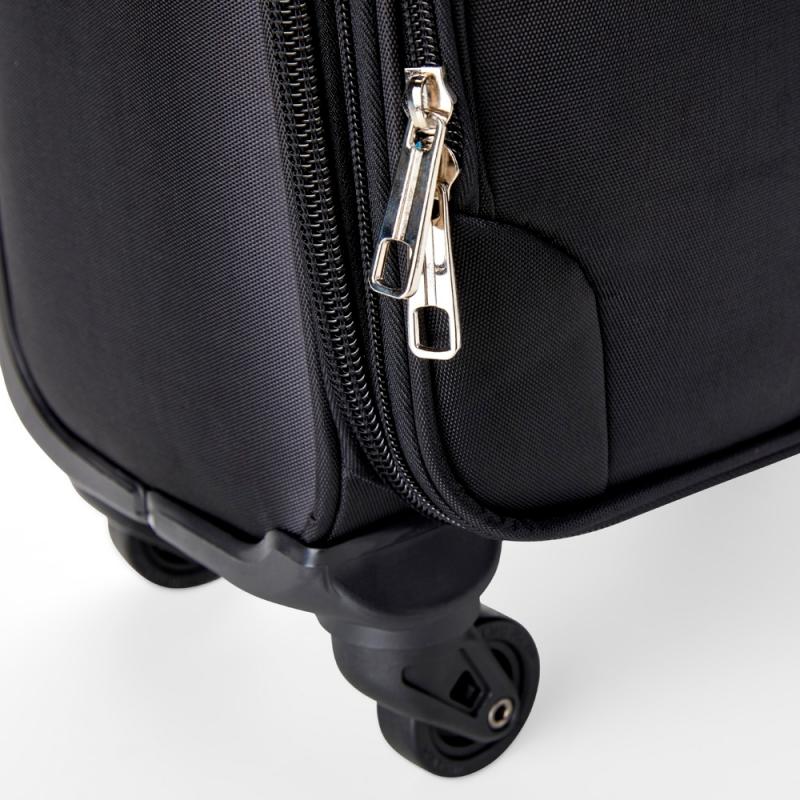 Mala de bordo 47 Litros com padrão ANAC (Agência Nacional de Aviação Civil), confeccionada em poliéster de alta qualidade, com cadeado numérico TSA. Possui etiquetas de identificação embutidas na mala, sendo uma integrada ao cadeado e outra na parte de trás da mala, acoplada por estojo em couro sintético. Três compartimentos, bolso telado, cinta compressora para roupas, alça de mão em poliéster, puxador retrátil com regulagem de tamanho e quatro rodinhas 360º.