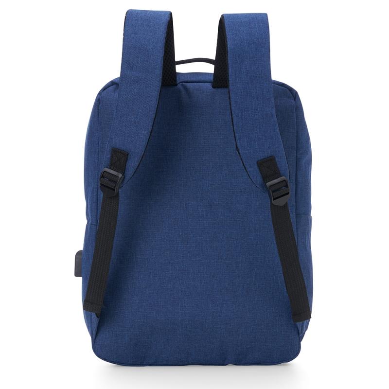 Mochila de nylon 21 litros com três compartimentos, sendo o principal com bolso para notebook 156. Com divisórias internas para acessórios, a mochila possui bolso lateral, suporte externo usb e uma alça de mão.